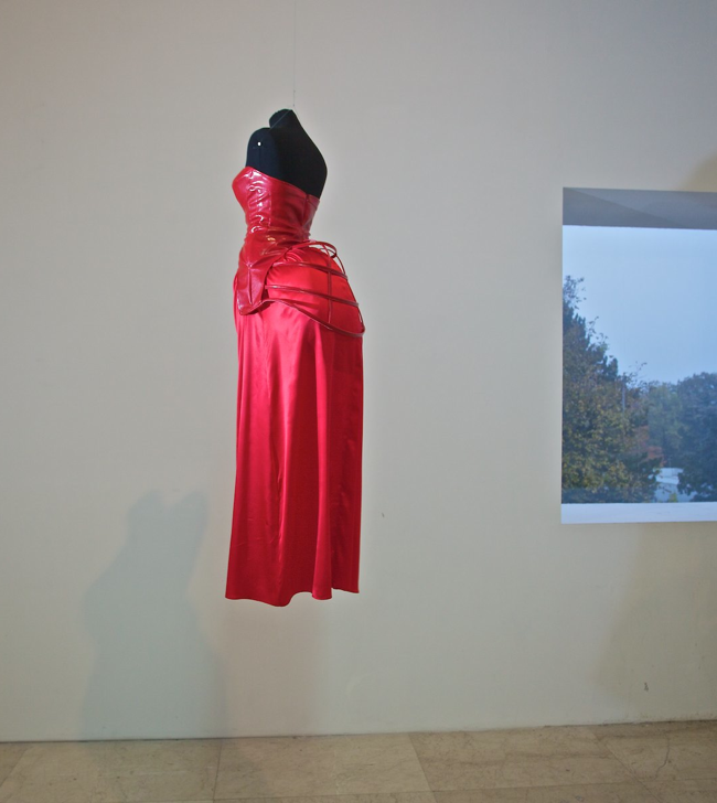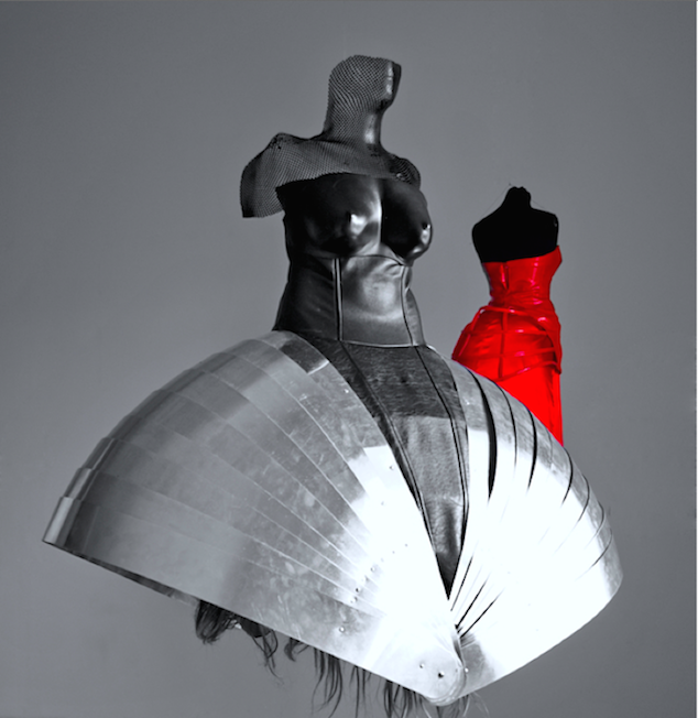 The first dress, made of red leather and silk, symbolizes the internal structure of vagina.