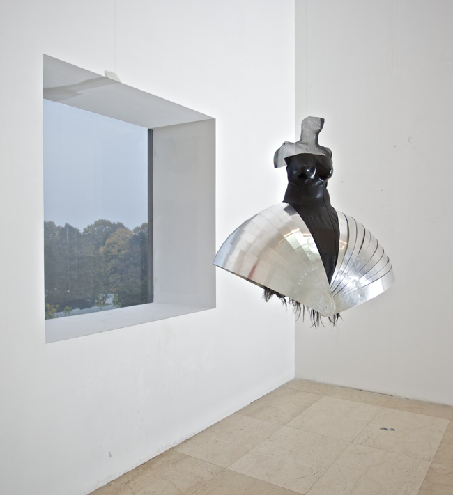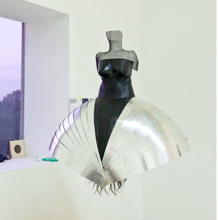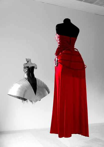 (metal, leather, thermoplastic, silk, hair, 2010)Two dresses hanging from the […]